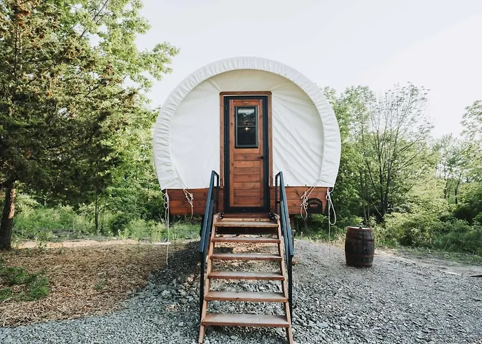 The nearest airport is Elmira/Corning Regional located within 70 km from Heated & Ac Yurt Villa.